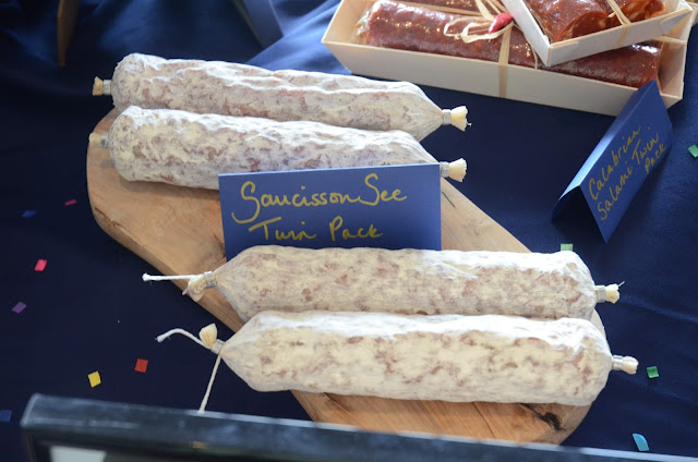 As well as trying the salads, I tasted a few of the new lines that are being introduced for Christmas. They are entering into "gifting" (horrible word) for the first time, with some snazzy decorative kilner jars of olives (the citrus Nocellara with garlic were particularly good) and glass beer mugs of snacking chorizo or fuet. Fortunately